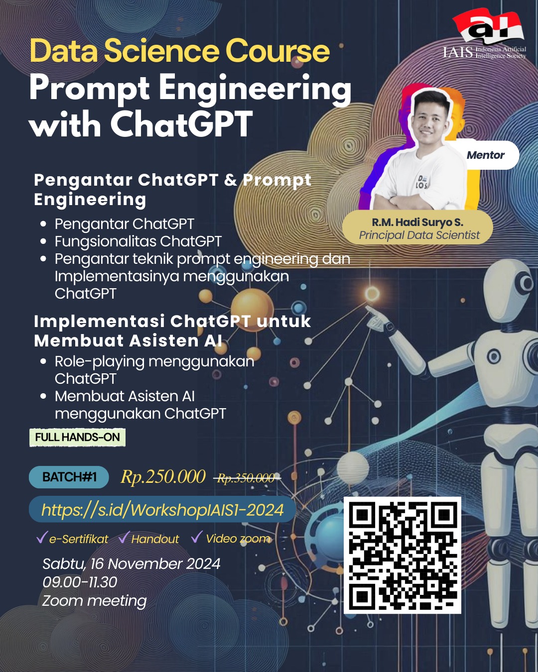 πŸ“ Daftar di sini: https://s.id/WorkshopIAIS1-2024