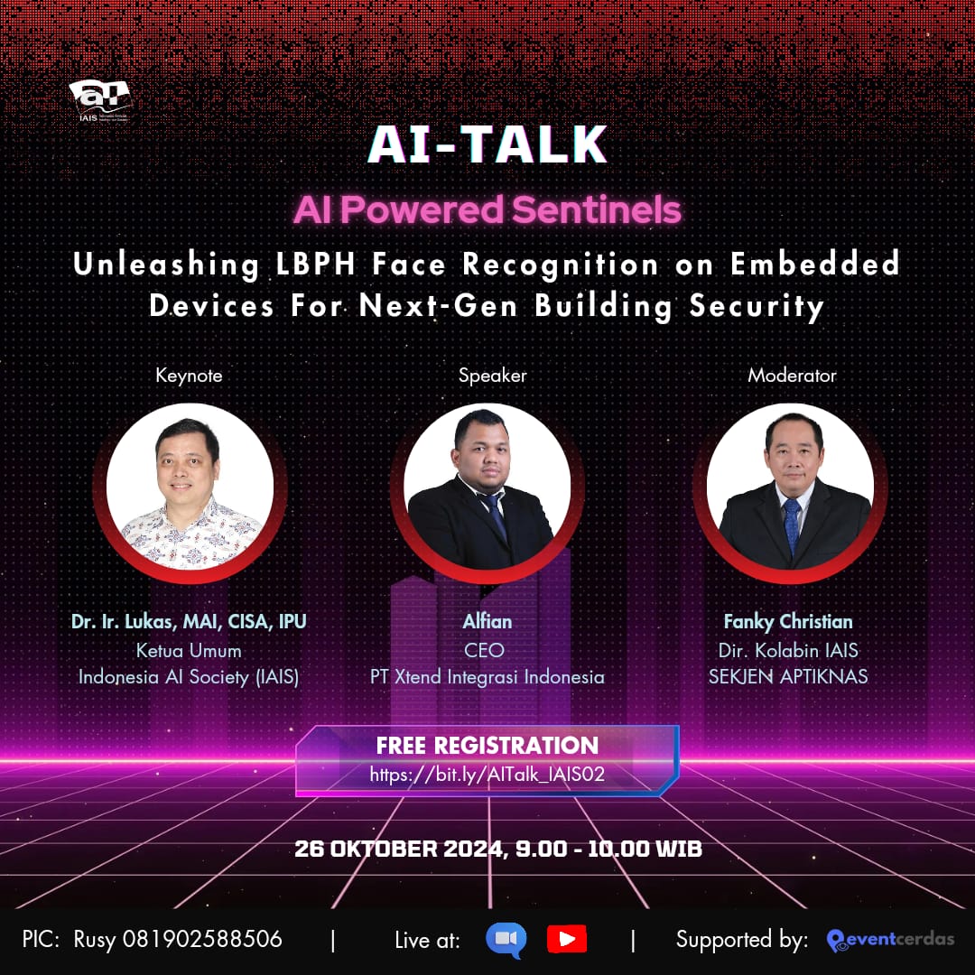 Temukan jawabannya di webinar AI-Talk dengan tema “AI-Powered Sentinels: Unleashing LBPH Face Recognition on Embedded Devices for Next-Gen Building Security” yang diselenggarakan oleh IAIS (Indonesia Artificial Intelligence Society).