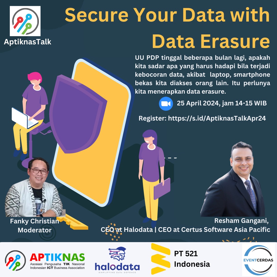 Ikuti pembahasannya dalam Secure Your Data With Data Erasure pada 25 April 2024, Jam : 14.00 – 15.00 WIB.