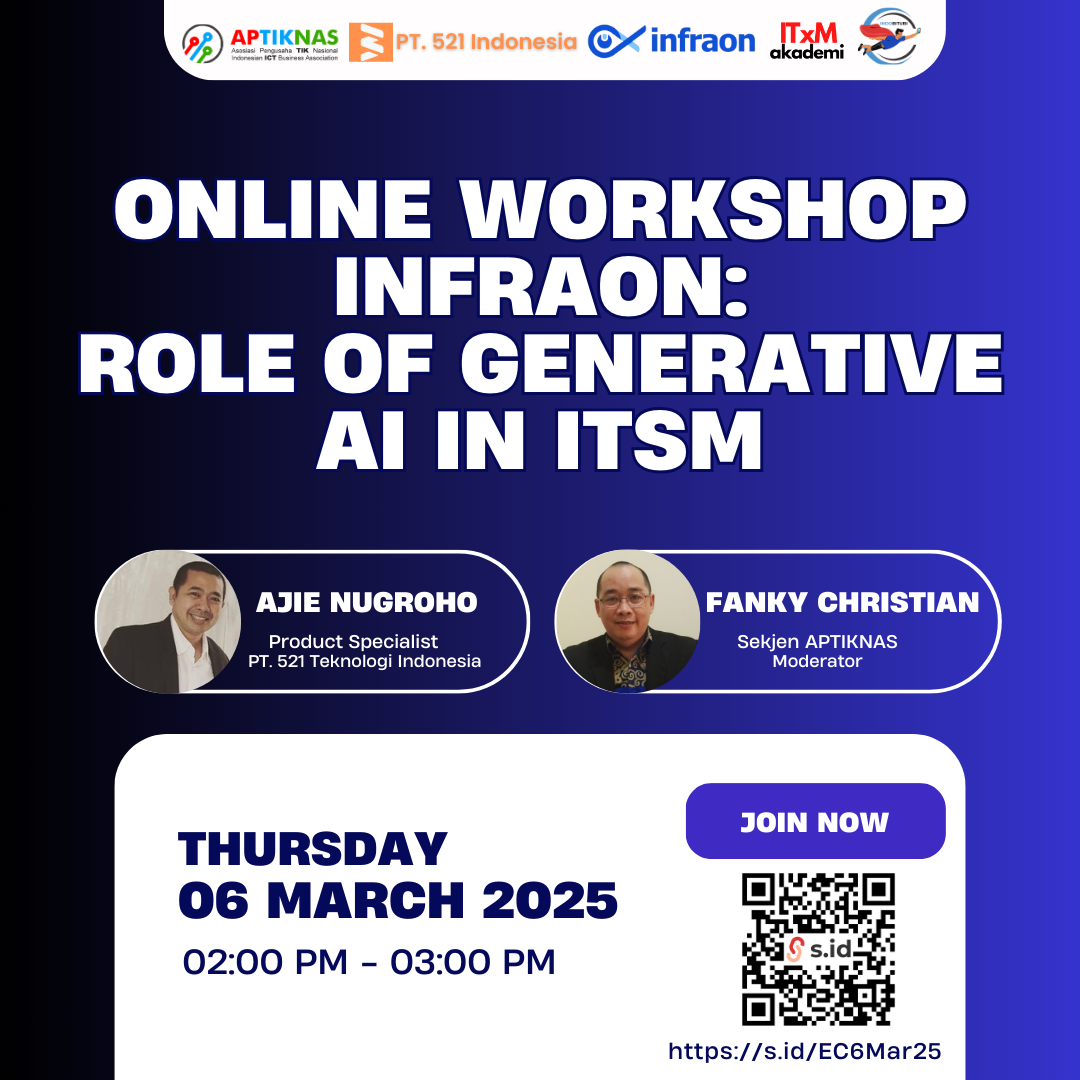 Ikuti pembahasan lengkapnya dalam workshop “Role of Generative AI in ITSM” pada:
