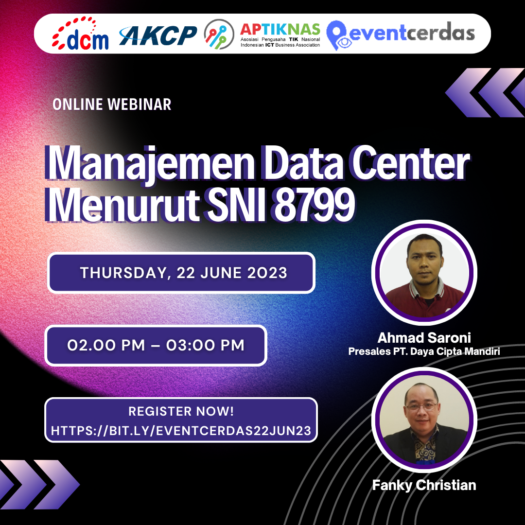 #Manajemen #ManajemenDataCenter #DataCenter #SNI8799 #StandarNasionalIndonesia #DCM #AKCP #APTIKNAS #Eventcerdas #Installation #Webinar