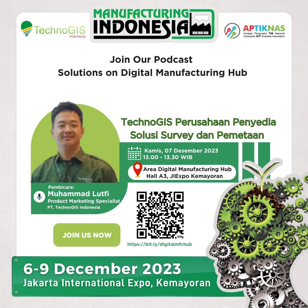 Menyambut pak Muhammad Lutfi Rais yang akan menyampaikan materi “TechnoGIS Perusahaan Penyedia Solusi Survey dan Pemetaan” dalam presentasi podcast di Digital Manufacturing Hub, di area Manufacturing Indonesia, JIEXPO Jakarta.