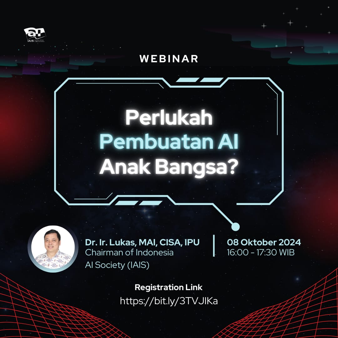 * Dr. Ir. Lukas, MAI, CISA, IPU (Unika Atma Jaya, Jakarta), Chairperson of the Indonesia AI Society (IAIS)