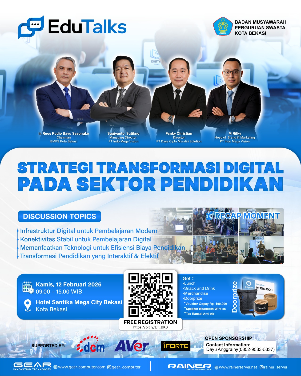 Indo Mega Vision bekerjasama dengan BMPS Kota Bekasi menyelenggarakan Seminar Teknologi, dengan tujuan memberikan update teknologi terkini, mengenai tren dan inovasi dalam teknologi yang mendukung pendidikan melalui ruang diskusi dan networking