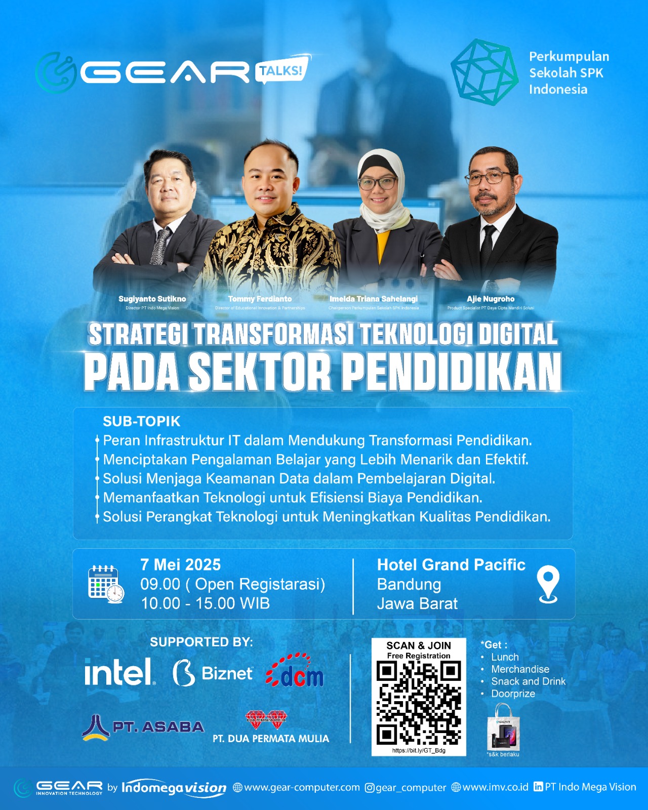 Indo Mega Vision bekerjasama dengan PSSI (Perkumpulan Sekolah SPK Indonesia) menyelenggarakan Seminar Teknologi, dengan tujuan memberikan update teknologi terkini, mengenai tren dan inovasi dalam teknologi yang mendukung pendidikan melalui ruang diskusi dan networking