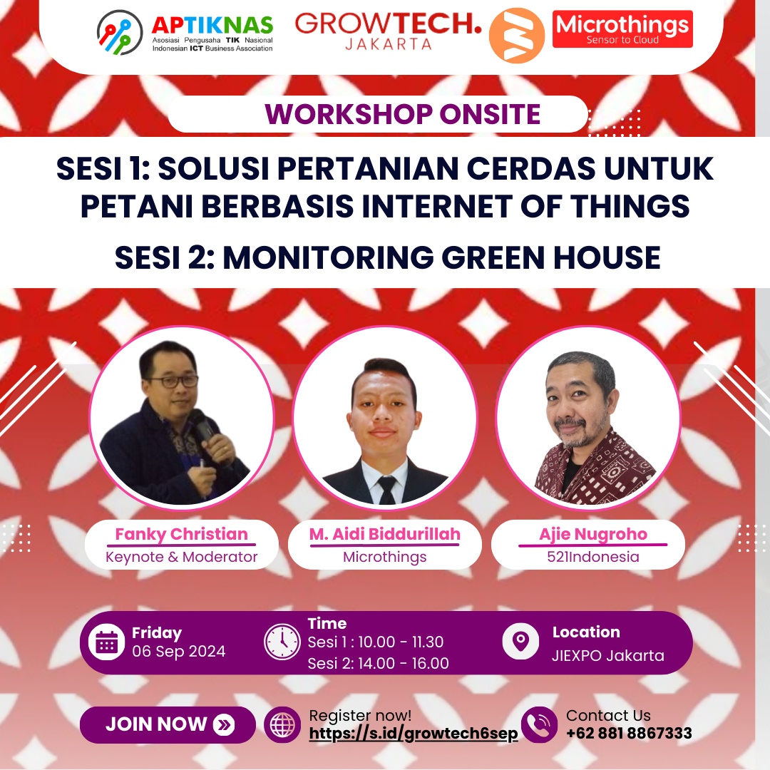 Ikuti kegiatan workshopnya dengan tema Workshop : Grow Your Agriculture Using IT Monitoring And Controlling pada :