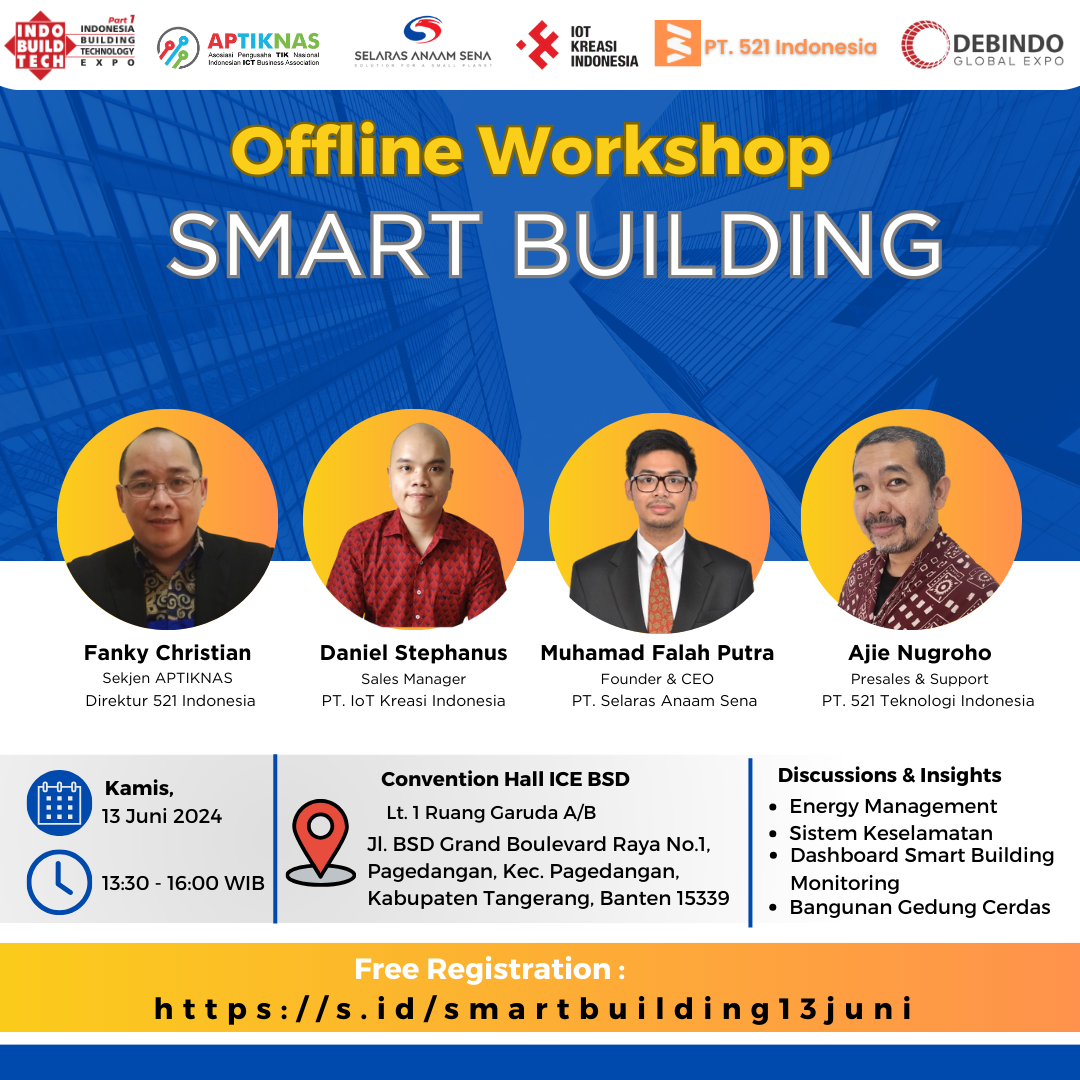 APTIKNAS dan EVENTCERDAS terus mendukung upaya implementasi smart building di Indonesia. Seiring dengan keluarnya peraturan Bangunan Gedung Cerdas dari PUPR, maka workshop Smart Building ini diselenggarakan.